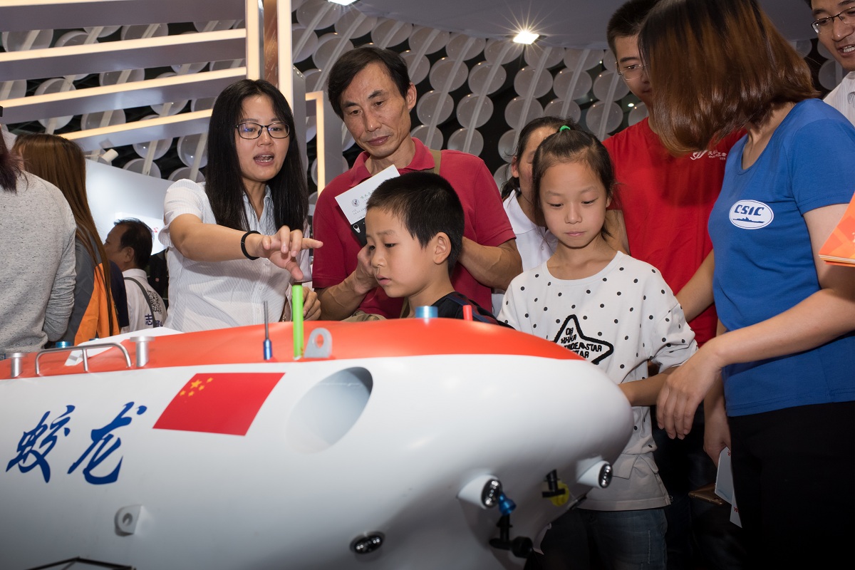 蛟龙志愿服务队志愿者向市民介绍蛟龙号