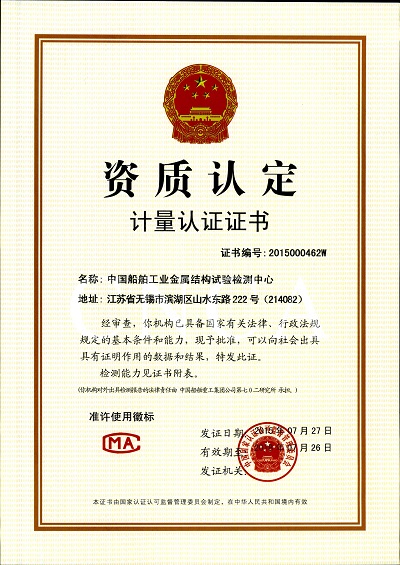 结构检测中心下设结构强度疲劳试验室、水下工程结构试验室、振动噪声试验室、爆炸冲击试验室、压力容器试验室、实船性能试验室。先后承担了各种船舶结构、海洋平台结构、建筑结构、潜水装具、水下机器人、钢缆锚链、压力容器的试验、研究和检测(包括模型和实体),为设计、安全评估、产品鉴定提供了大量的试验资料和实测数据。