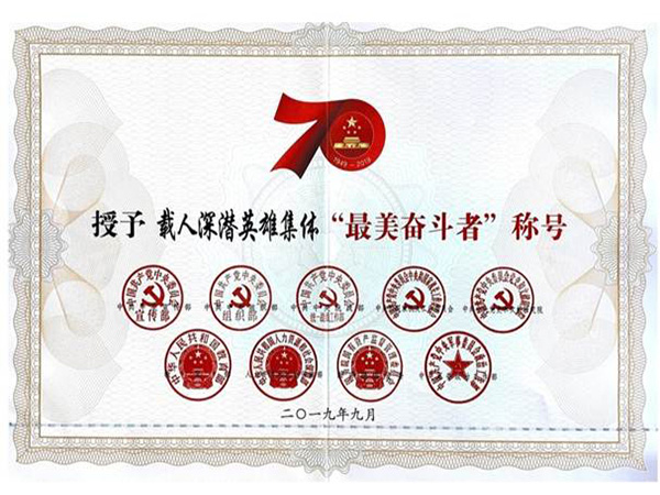 奋斗者号载人深潜团队荣誉证书