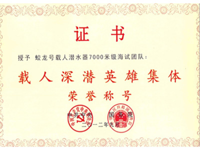 载人深潜英雄证书