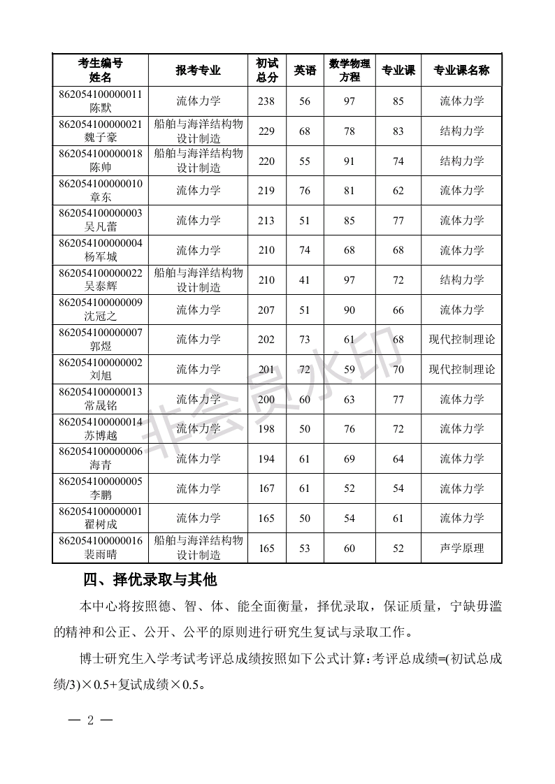 中国船舶科学研究中心2024年博士研究生招生复试工作安排