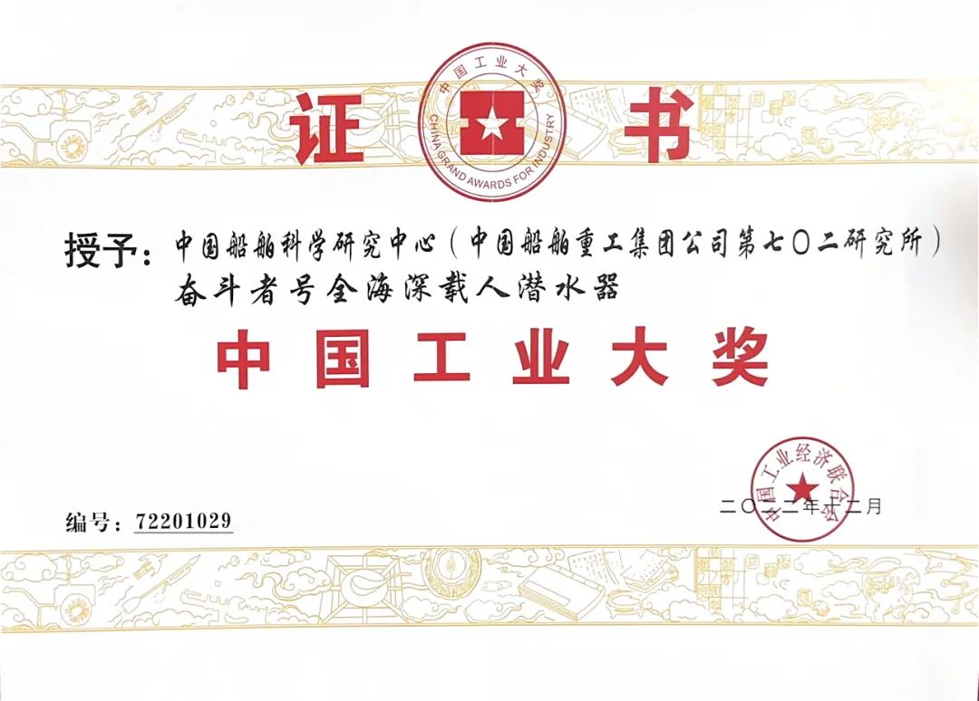 3月19日,第七届中国工业大奖发布会在京隆重举行。中国船舶七〇二所牵头研制的“奋斗者”号全海深载人潜水器项目荣获中国工业大奖。中国工业大奖是经国务院批准设立...